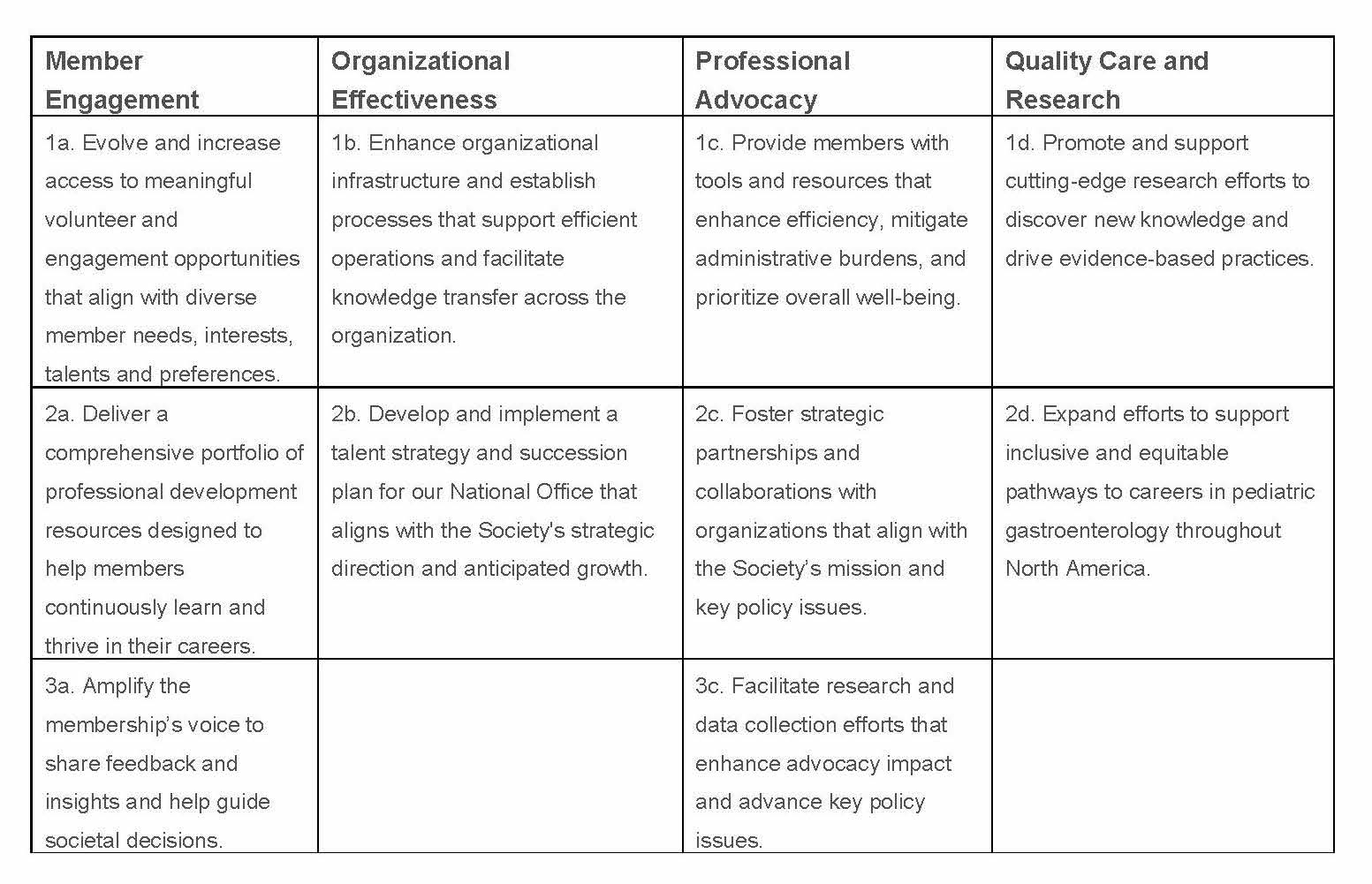 In 2023, NASPGHAN engaged a consulting firm (McKinley Advisors) to develop a strategic plan that would help guide us into the next 3 years of our future. As part of this effort, McKinley and NASPGHAN leaders have electronically surveyed all members, conducted virtual interviews with numerous stakeholders, and have also conducted both virtual and in person strategic planning sessions. We also sent a draft of the strategic plan to all NASPGHAN members for their input.